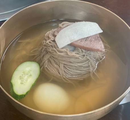 -을지면옥의 육수는 진한 소고기 육수와 동치미 국물이 조화를 이루며, 깊고 진한 맛을 냅니다. 이는 평양냉면의 특징인 담백함과 동시에 풍미를 더해줍니다.