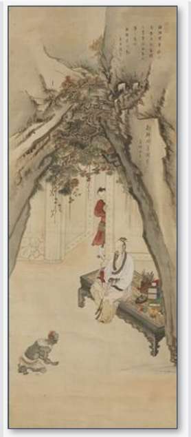 고사인물도는 신화나 역사 속 인물에 얽힌 일화를 주제로 그림을 그립니다. 제갈량이 남만국의 왕 맹획을 7번 잡았다 놓아주고는 심복을 만들었다는 칠종칠금 고사를 다룬 그림입니다. 우측 상단에는 조선국의 혜원이 그리다는 묵서가 있습니다.